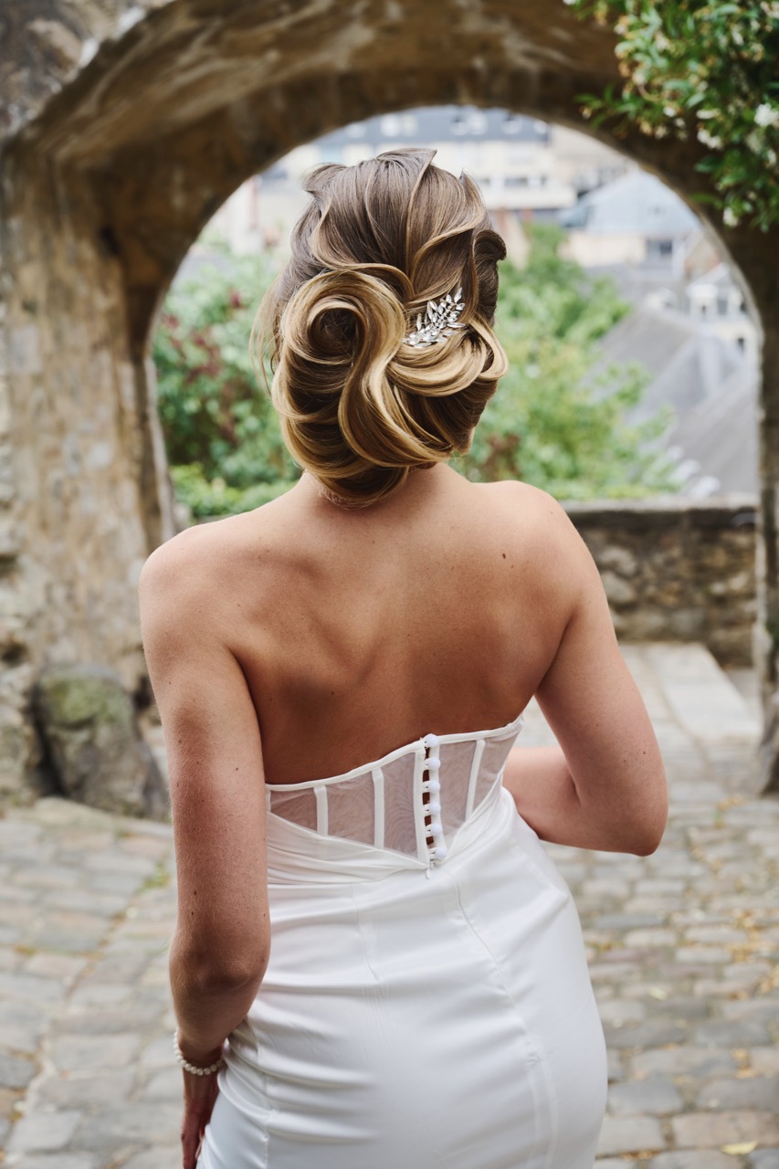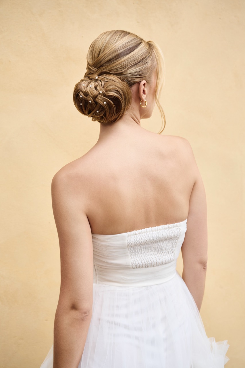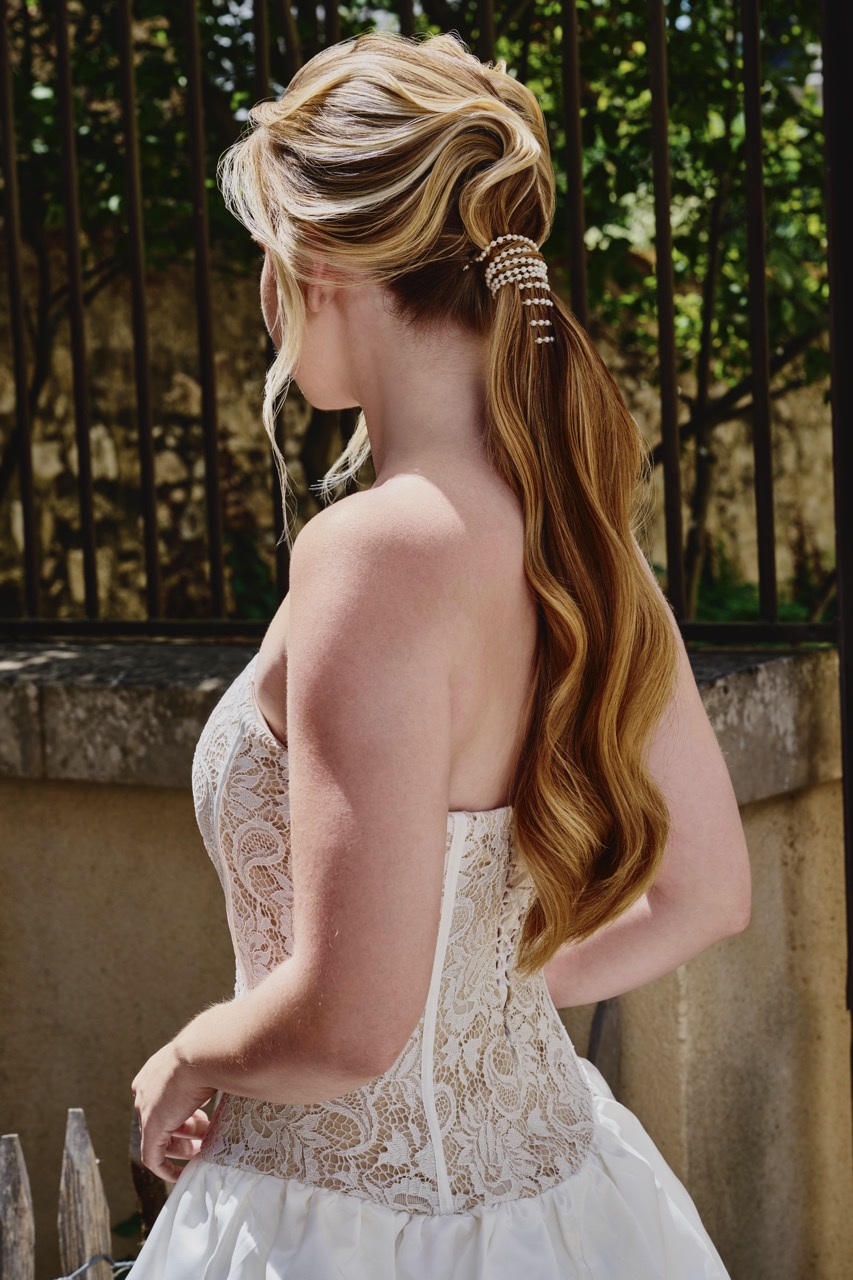 Cette collection a été réalisée au coeur du Vieux Mans, entre pierre dorées, ruelles pavées et lumière inspirante du sud, que nos coiffures prennent vie. Dans ce décor au charme intemporel, les chignons se réinventent : texture souples, mèches floues, volumes naturels et détails tressés. Les coiffures deviennent de véritables bijoux capillaires, sublimés de perles délicates pour une touche ultra féminine.
